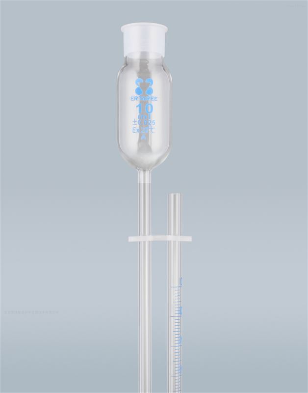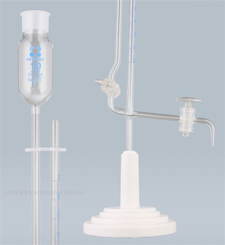 座式微量滴定管 高硼硅玻璃 透明棕色是滴定管與注液管連通的帶底座滴定管。注液管上接漏斗用于注入液體,下接二路活塞,用于控制液體進(jìn)入滴定管內(nèi),具活塞滴液尖嘴控制液體的流速。